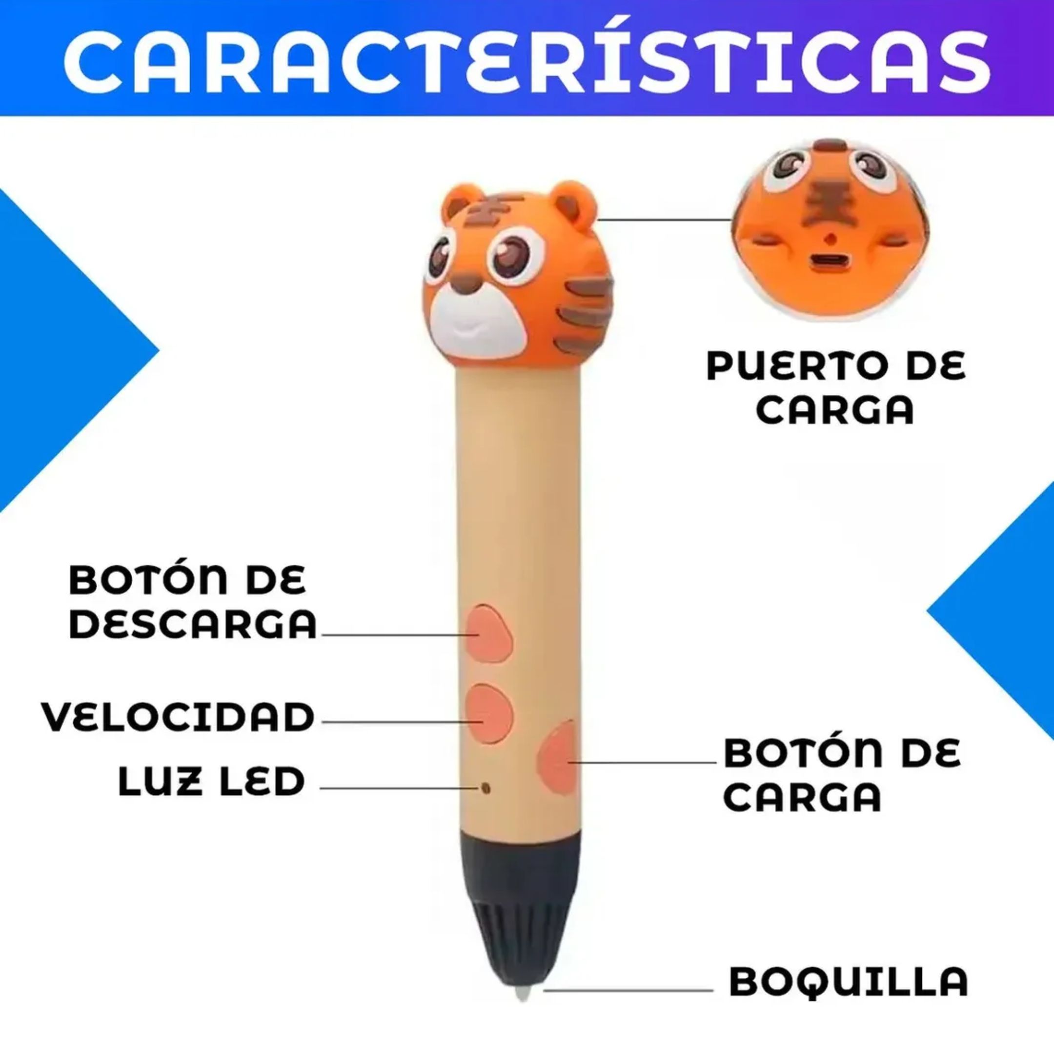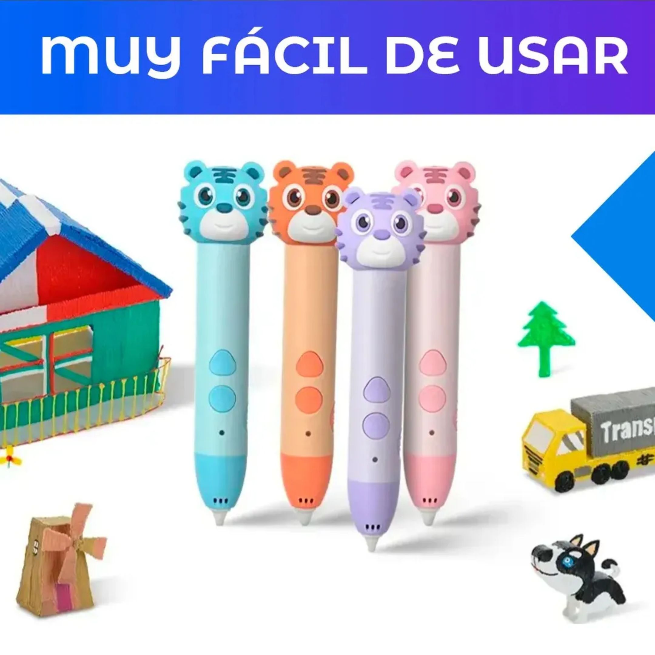Despertá la creatividad de los más chicos con este Lápiz 3D Infantil con Filamento, ideal para dibujar en el aire y crear animalitos y figuras en 3D de forma simple y divertida.