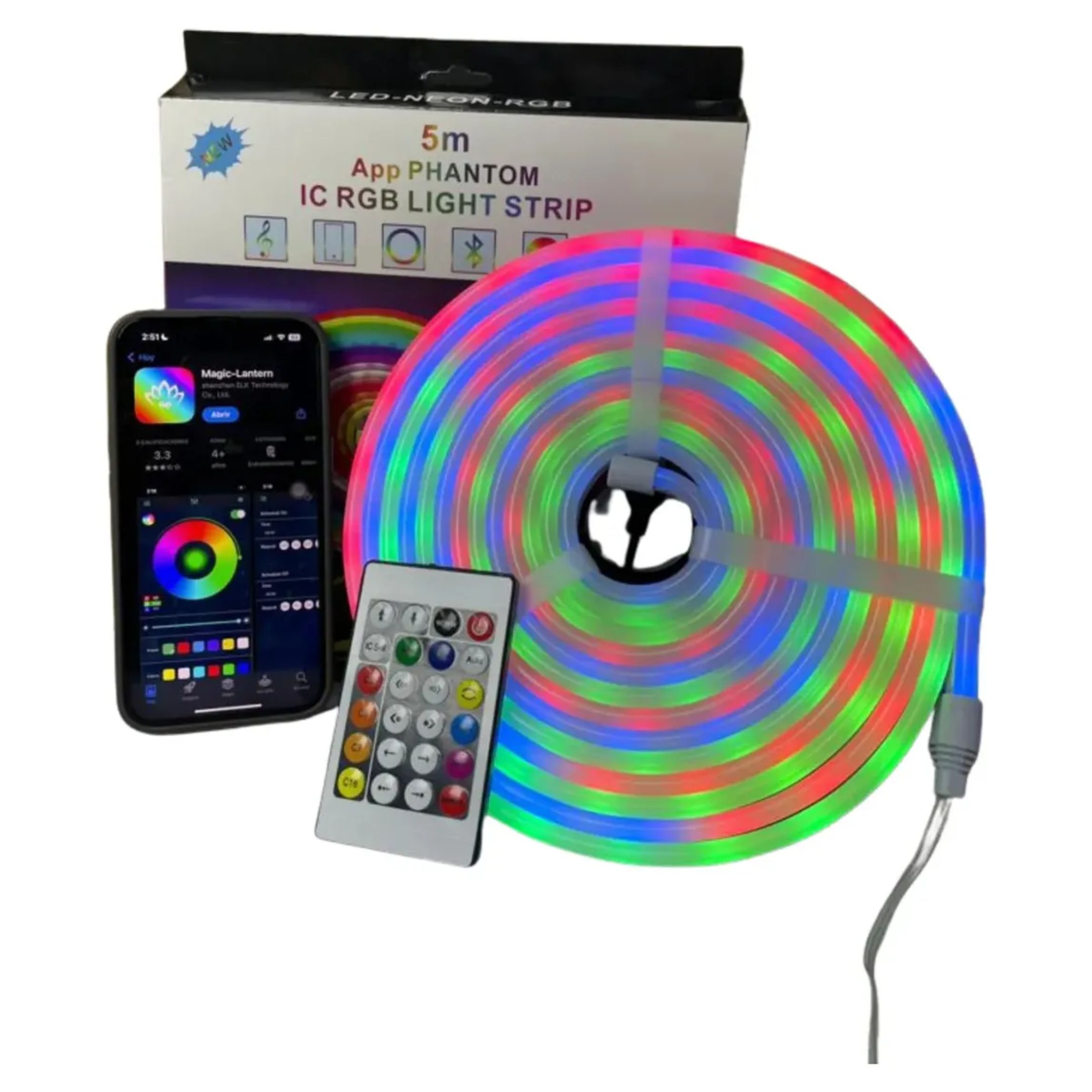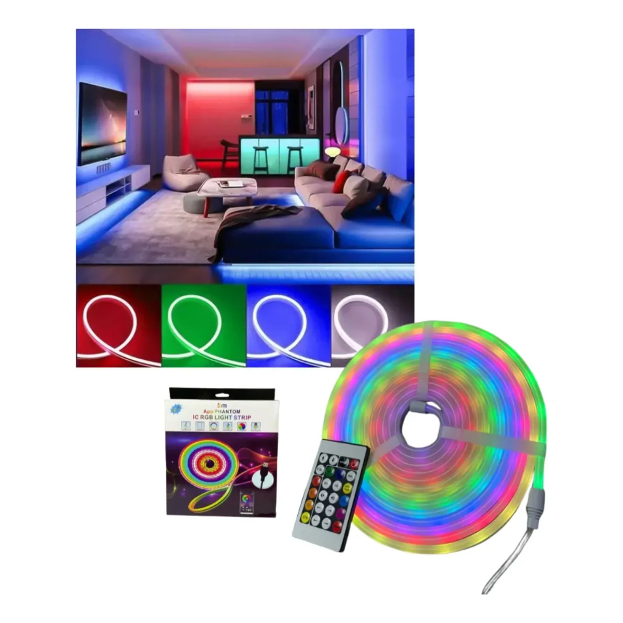 Tira LED Neon 5M USB IC RGB Phantom con Control y App BT
